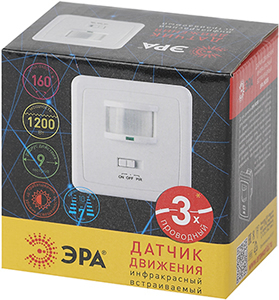 Датчик движения инфракрасный встраиваемый MD 08 "Эра" (1200 Вт, 9 м, 160°, IP20), белый