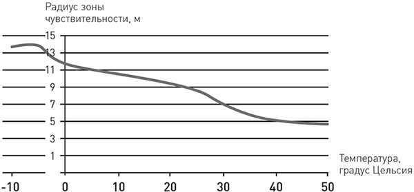 - Радиус зоны чувствительности датчика указан для температуры окружающей среды не более +24°C.