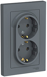 Розетка двухместная Schneider Electric ATN000724 AtlasDesign (16 А) скрытой установки, с заземлением, грифель
