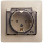 Розетка одноместная Schneider Electric GSL000248 Glossa (16 А, IP44, в сборе) с заземлением и защитными шторками, с крышкой, бежевый