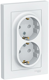 Розетка двухместная Schneider Electric ATN000126 AtlasDesign (16 А) скрытой установки, с заземлением и защитными шторками, белый