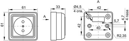 - Удобный монтаж кабеля через выштампованные вводы для проводников на основании корпуса изделия.