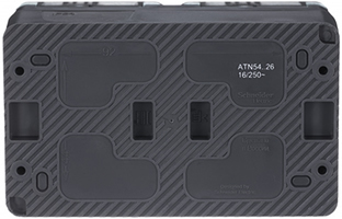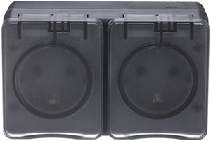 Розетка двухместная Schneider Electric ATN544026 AtlasDesign Profi54 (16 А, IP54) открытой установки, с заземлением, шторками и защитными крышками, антрацит