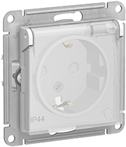 Розетка одноместная Schneider Electric ATN440146 AtlasDesign Aqua (16 А, IP44) скрытой установки, с заземлением, с защитными шторками, с крышкой, белый