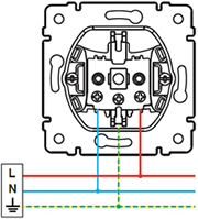 - Механизм розетки оснащен винтовыми зажимами для подсоединения медных проводников.