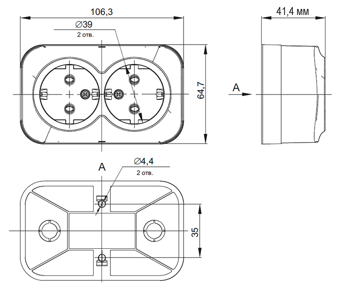 | Тип изделия | розетка штепсельная с заземляющими контактами, без защитных шторок |