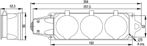 | Конструктивное исполнение | гнезда с защитными крышками, резиновый сальник для ввода кабеля |