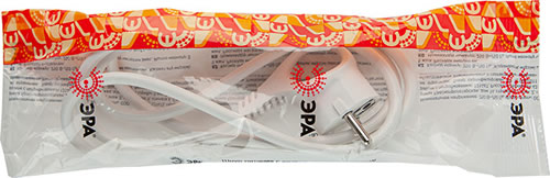 Шнур сетевой 1,5 м "Эра" UX-3x0,75-1,5m-W (10 А, 250 В, ПВС 3 x 0,75 кв.мм) с вилкой, белый