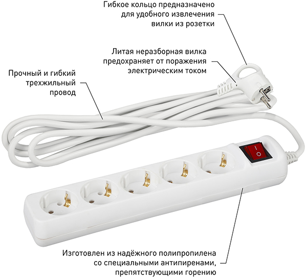 | Тип изделия | удлинитель бытовой с заземляющими контактами, без защитных шторок |