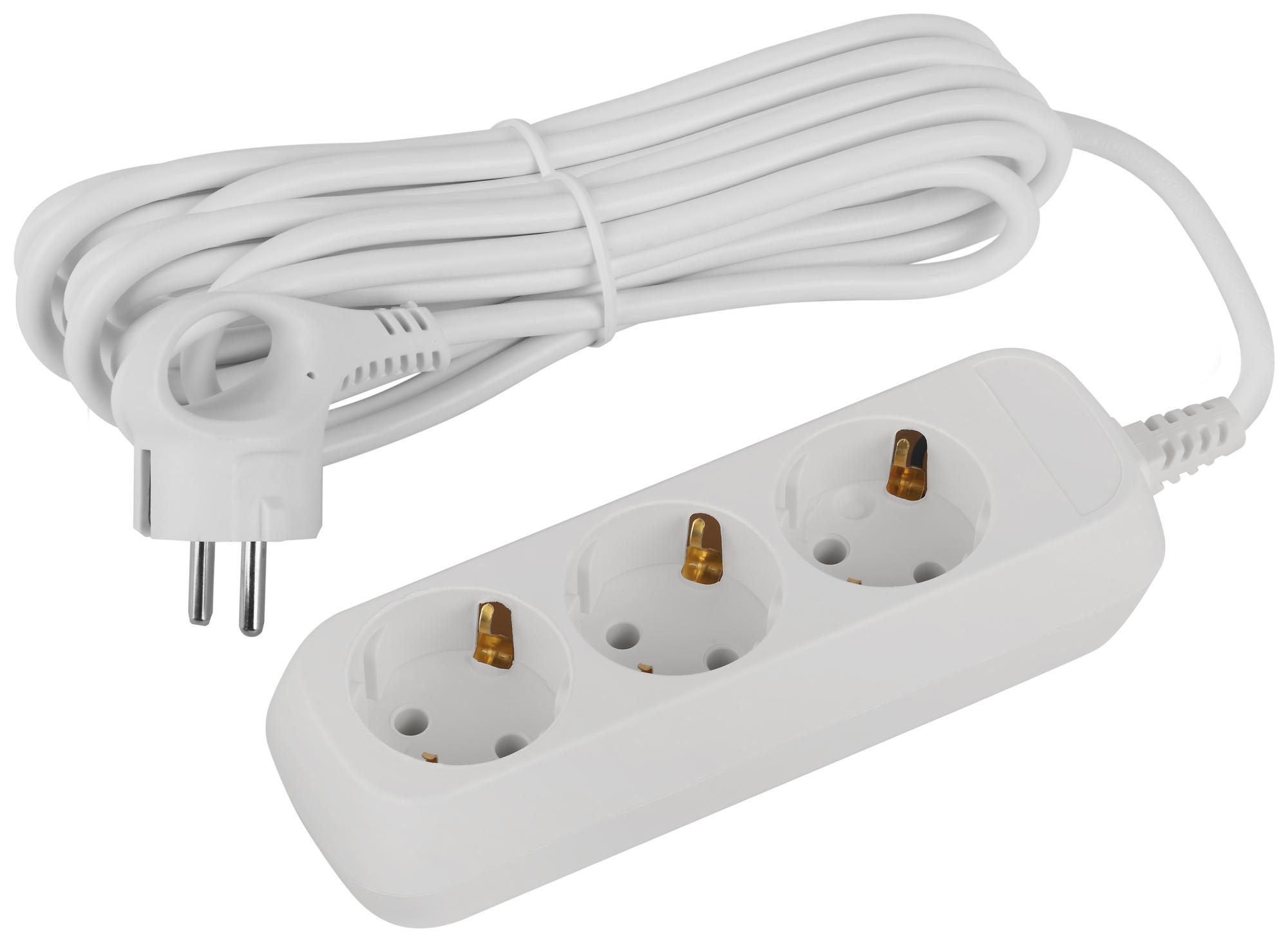 Удлинитель электрический Эра GREENLINE UDL-10-350-E с заземлением, 3 розетки, провод 5м ПВС 3x0,75мм2. Рассчитан на максимальную мощность 10А/2200 Вт. Удлинитель станет Вашим надежным помощником, если любимые электроприборы находятся далеко от розеток. Корпус выполнен из ударопрочного и негорючего пластика (полипропилен). Вилка обеспечена кольцом для удобного извлечения ее из розетки. Модель удлинителя на 10А позволяет подключить бытовые приборы общей нагрузкой до 2200Вт.