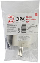 Вилка электрическая угловая V3 "Эра" Б0019186 (16 А, IP20) с заземлением, с ушком, белый