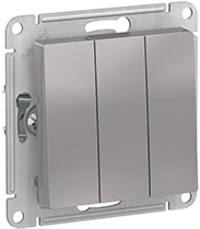Выключатель трехклавишный Schneider Electric ATN000331 AtlasDesign (10 АХ) скрытой установки, алюминий