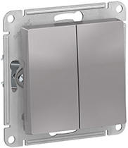 Переключатель двухклавишный Schneider Electric ATN000365 AtlasDesign (10 АХ) скрытой установки, алюминий
