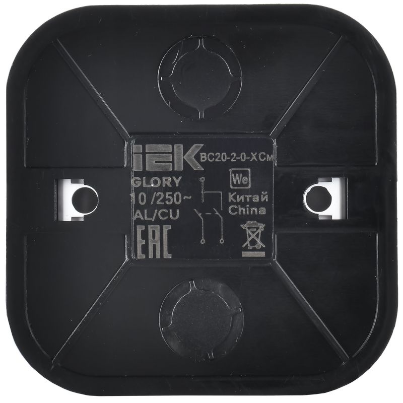 Выключатель двухклавишный IEK ВС20-2-0-ХСм Glory (10 А, IP20) открытой установки, сталь матовый