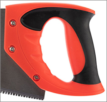 - Двухкомпонентная рукоятка изготовлена из ударопрочного обрезиненного пластика, прикреплена тремя винтами к полотну.
