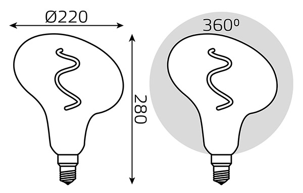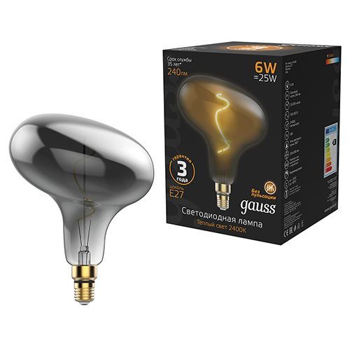 Лампа светодиодная декоративная Gauss Filament 165802008 Gray Flexible (FD180, Е27, 6 Вт, 240 лм, 2400 К, серая фигурная колба)