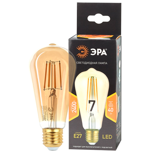 Лампа светодиодная F-LED ST64-7W-824-E27 Gold "Эра" (7 Вт, 910 лм, 2400 К, золотистая колба ST64)