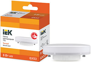 Лампа светодиодная IEK LLE-T80-8-230-30-GX53 (tablet T75, 220 В, GX53, 8 Вт, 720 лм), цвет свечнеия теплый белый
