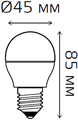 Лампа светодиодная Gauss 53226 Elementary (G45 шар, 220 В, Е27, 6 Вт, 450 лм, 4100 К)