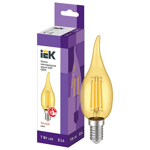 Лампа светодиодная IEK LLF-CB35-7-230-30-E14-CLG (свеча на ветру, 7 Вт, 840 лм, 2700 К, золотистая колба)