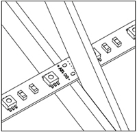 При креплении ленты не надавливать на светодиоды, резисторы и управляющие элементы. - При необходимости разрезать ленту по специально нанесенной разметке.