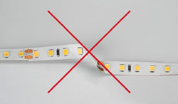 - Ленту нельзя изгибать в горизонтальной плоскости, перекручивать, растягивать, изламывать или сгибать под прямым углом.