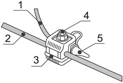 - Стяжной монтажный болт со срывной головкой изолирован от токоведущих частей, что позволяет производить установку зажимов под напряжением.