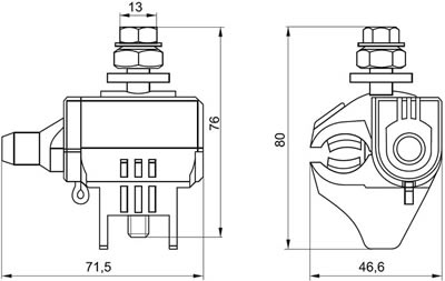 - При затягивании болта ножи контактной пластины образуют надежный электрический контакт, прокалывая изоляцию ответвительного проводника, одновременно с этим зажимая поверхность неизолированного магистрального проводника.
