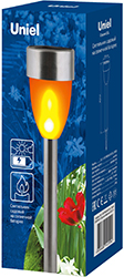 Светильник светодиодный грунтовый Uniel USL-S-187/MM360 Metal Torch (10 led, эффект пламени, металл, IP44) на солнечной батарее, высота 365 мм, серебро
