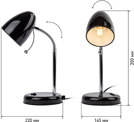 Компактный настольный светильник N-116-Е27-40W-BK "Эра" с цоколем Е27 может использоваться с лампой накаливания, компактной люминесцентной или светодиодной лампой.