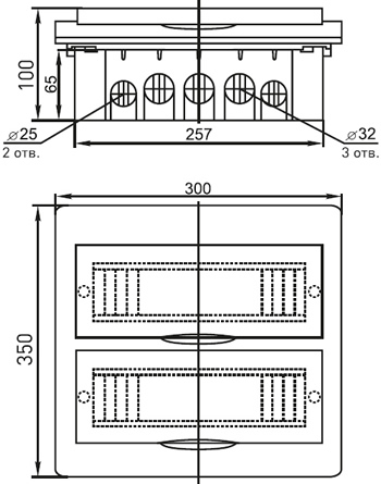 | Наличие шин N, PE | 4 шины (по 5 отверстий) |