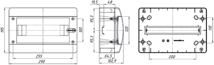 Выдавливаемые отверстия для подведения кабеля сбоку выполнены с внутренней стороны, что позволяет сохранить гладкой внешнюю поверхность щита. |