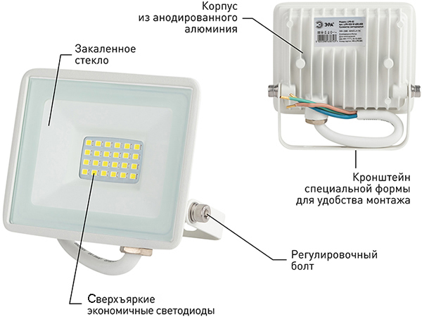 Светодиодный прожектор "Эра" серии LPR предназначен для внутреннего или наружного освещения заливающим светом.