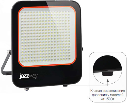 Прожекторы PFL-V мощностью 150 Вт и 200 Вт оснащены клапаном выравнивания давления.